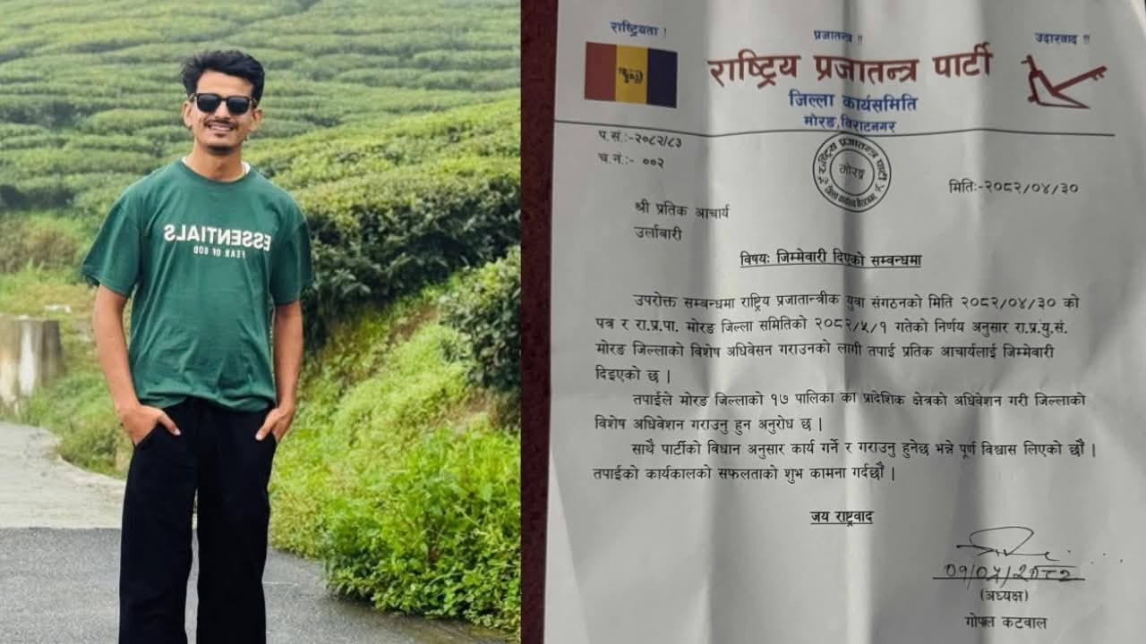 राष्ट्रिय प्रजातान्त्रिक युवा संघ मोरङको संयोजकमा उर्लाबारीका प्रतीक आचार्य